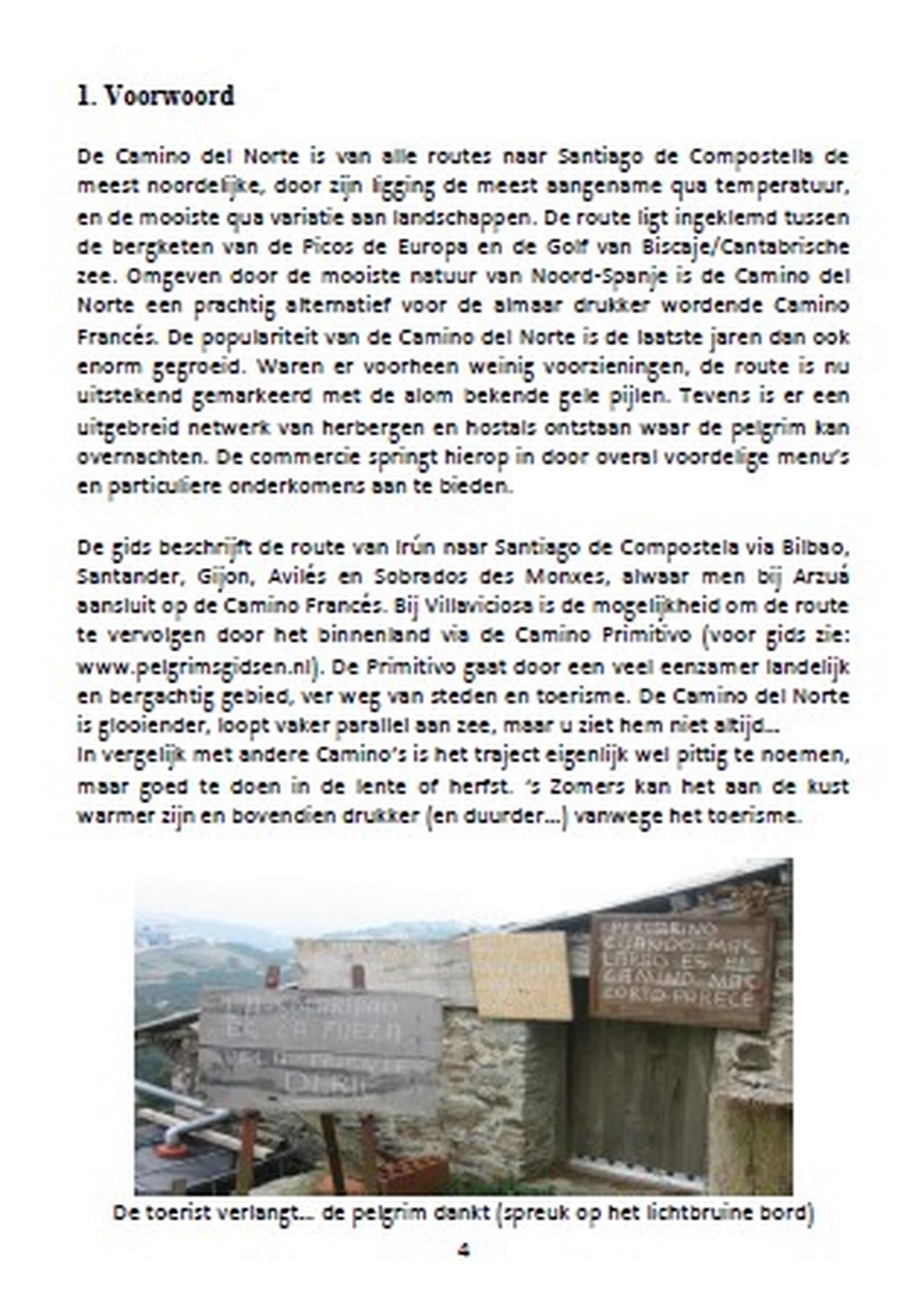 De gids beschrijft de route van Irun naar Santiago de Compostela via Bilbao, Santander, Gijon, Avilés, Ribadeo en Sobrados des Monxes, alwaar men bij Arzuá aansluit op de Camino Francés. Bij Villaviciosa is de mogelijkheid om de route te vervolgen door het binnenland via de Camino Primitivo. De Primitivo gaat door een veel eenzamer landelijk en bergachtig gebied, ver weg van steden en toerisme. De Camino del Norte is glooiender, loop vaker parallel aan zee, maar u ziet hem niet altijd…