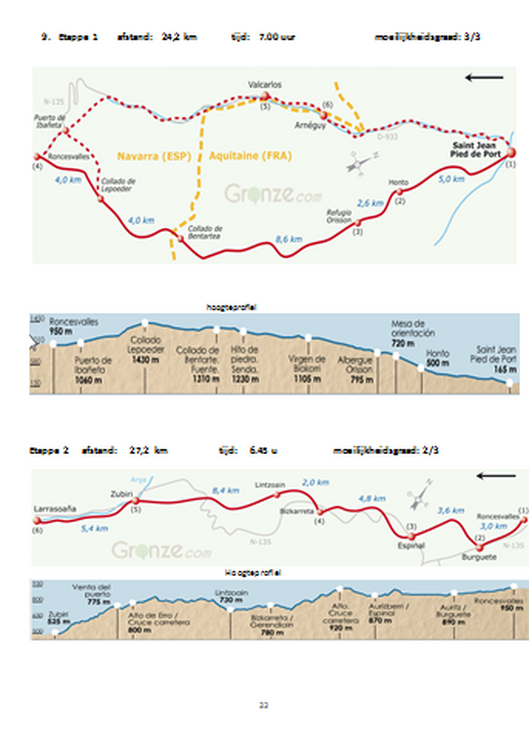 De gids geeft informatie over de verschillende mogelijkheden van het reizen naar St Jean Pied-de-Port, en de inlooproute vanuit St Palais