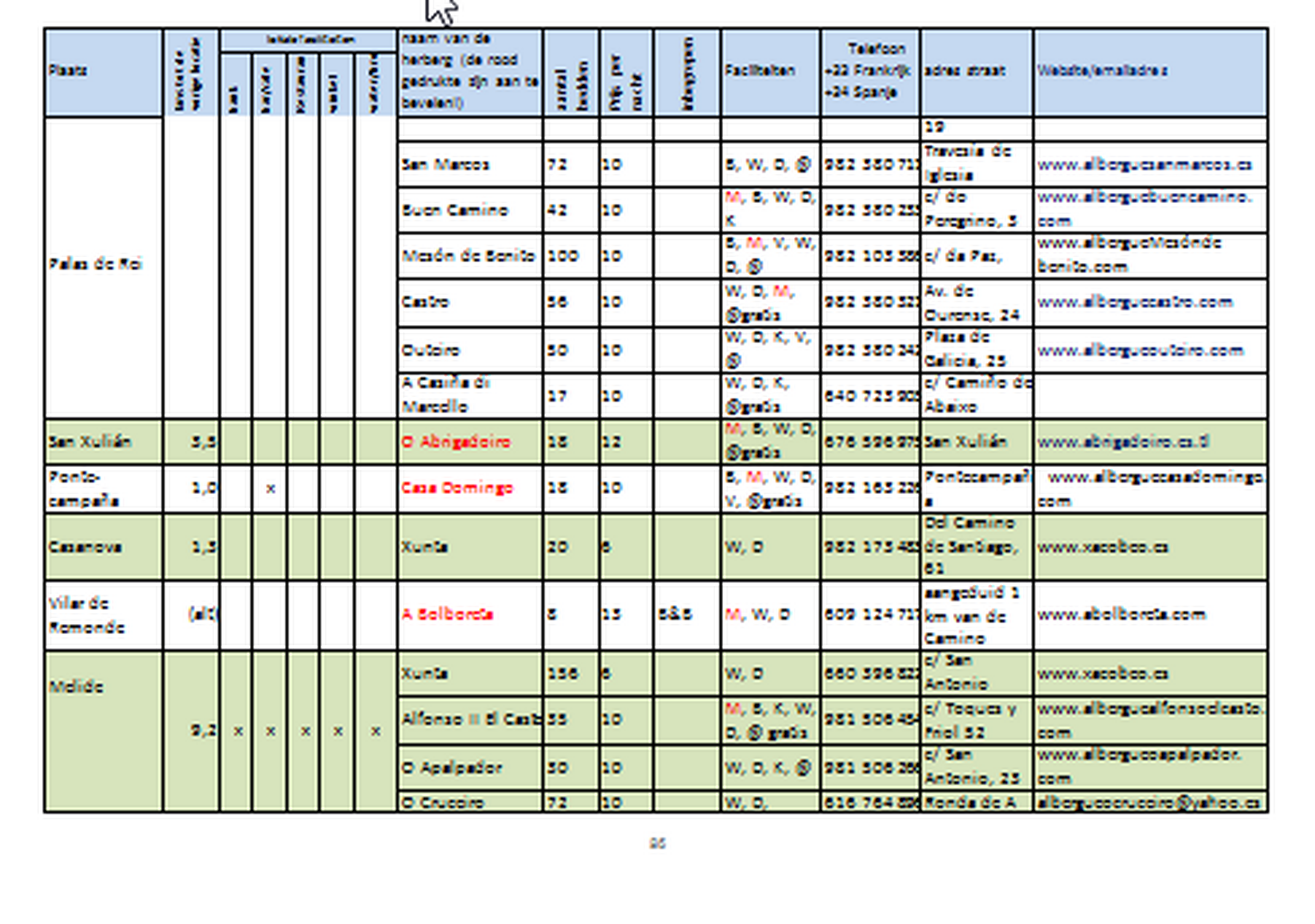 Verder vindt de pelgrim er schematische routekaartjes en hoogteprofielen van de Camino Frances.  Daarbij behorend een complete up-to- date lijst met alle herbergen en hun kenmerken langs de gehele route. Bovendien zijn de herbergen die iets "speciaals "hebben met rood gemerkt ! Door regelmatige herdruk altijd erg aktueel!